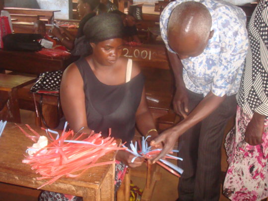 Victory of God Missionaries Ministry changed everything for me. They came into the camp offering training and small grants to help women start businesses. I joined a group of five women, and together we decided to start a handcraft cooperative. Back in Congo, I had learned how to make traditional baskets, and a few of the other women knew how to weave jewelry and make other handcrafts. We realized that there was a market for these goods, especially among the aid workers and visitors to the camp.